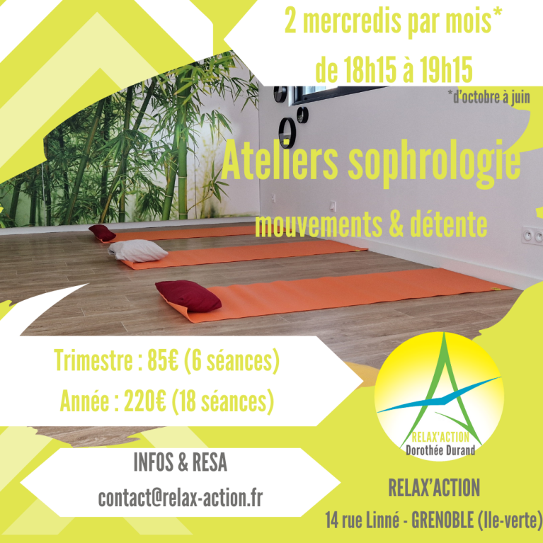 Je suis heureuse de vous proposer à partir de cet automne des ateliers collectifs de sophrologie, 2 fois par mois 🌿