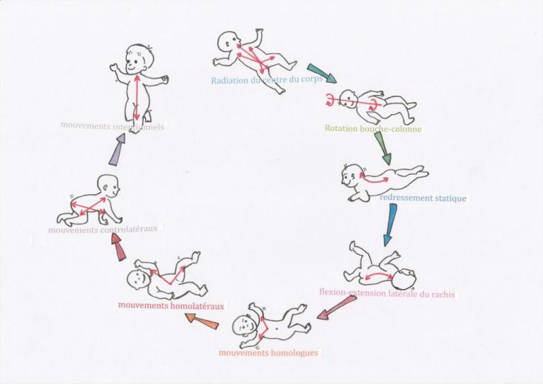 Leur évolution connaît 3 stades : une phase d’émergence, une phase d’activation et une phase d’intégration (pouvant aller jusqu'à l'age de 3 ans).